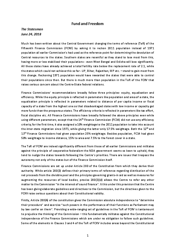 15Th Finance Commission Of India Pdf 15Th Finance Commission Of India Pdf - This commission is expected to submit its report by november end 2019.
