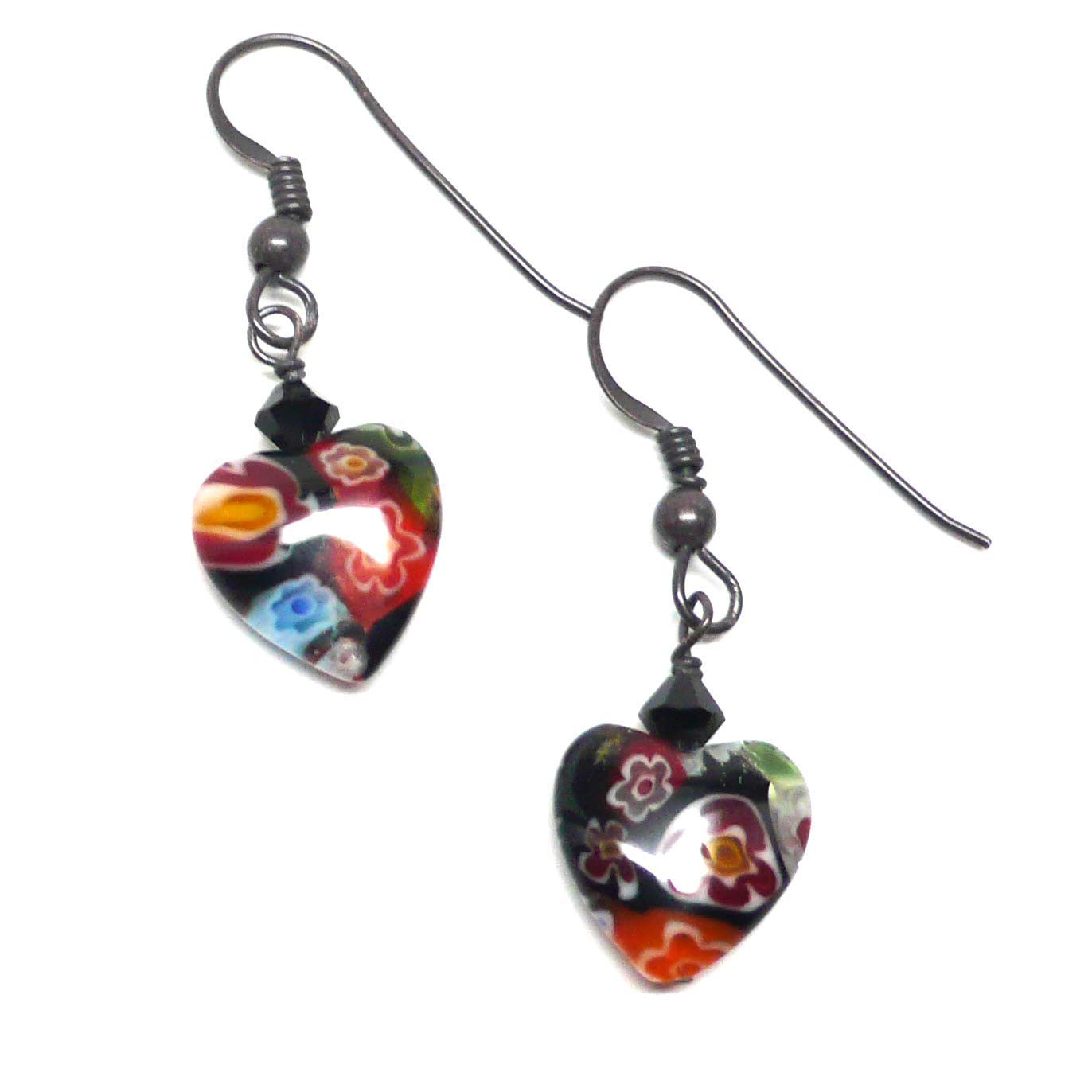 Amazon Com Millifiore 12mm Glass Heart Earrings Oxidized Sterling Silver Black Handmade - Oxidized silver jewellery is one of the most trending pieces at the moment.