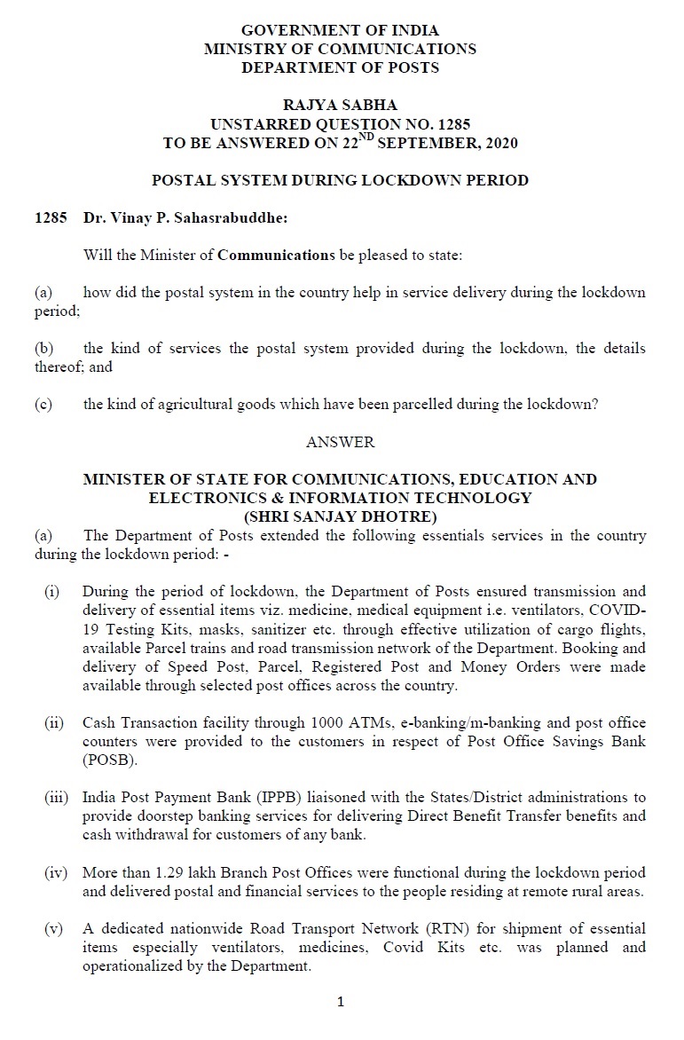 Postal System During Lockdown Period Rajya Sabha Q A 22 09 2020 Po Tools - Unstarned questions related to ministry of water power.