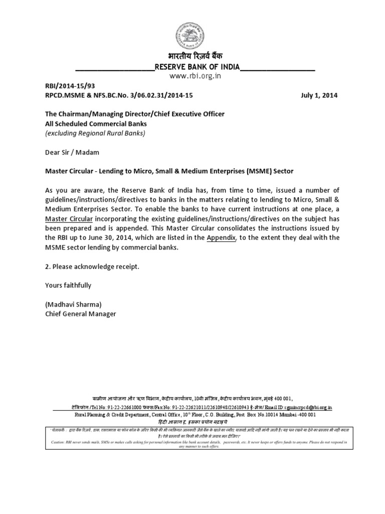 Rbi Msme Master Circular Rbi Msme Master Circular - .circular & fema guidelines payment mechanism shipment of goods & payment :